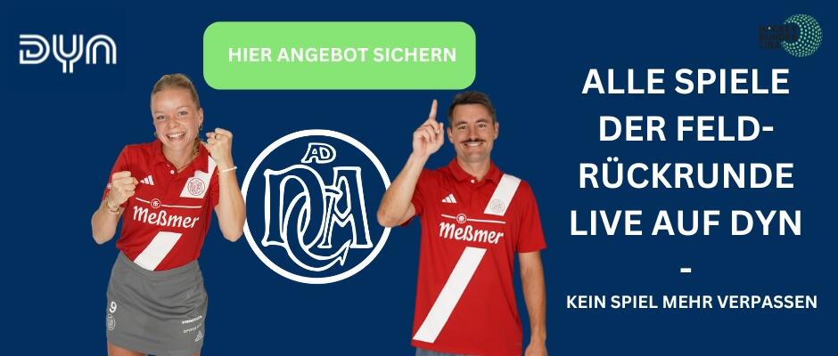 Kein Spiel verpassen, ob live dabei oder im Stream. Alle Livestreams der Feldhockey Bundesliga sind ab sofort auf der Plattform DYN verfügbar. Verpassen Sie kein Spiel und seien Sie live dabei!
